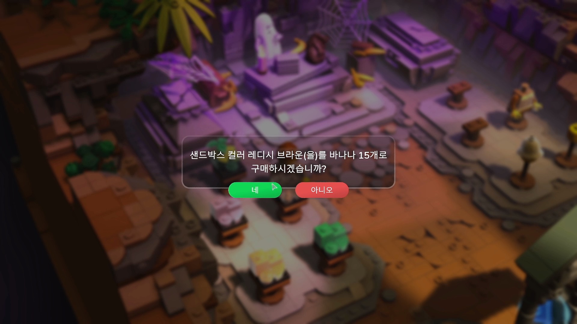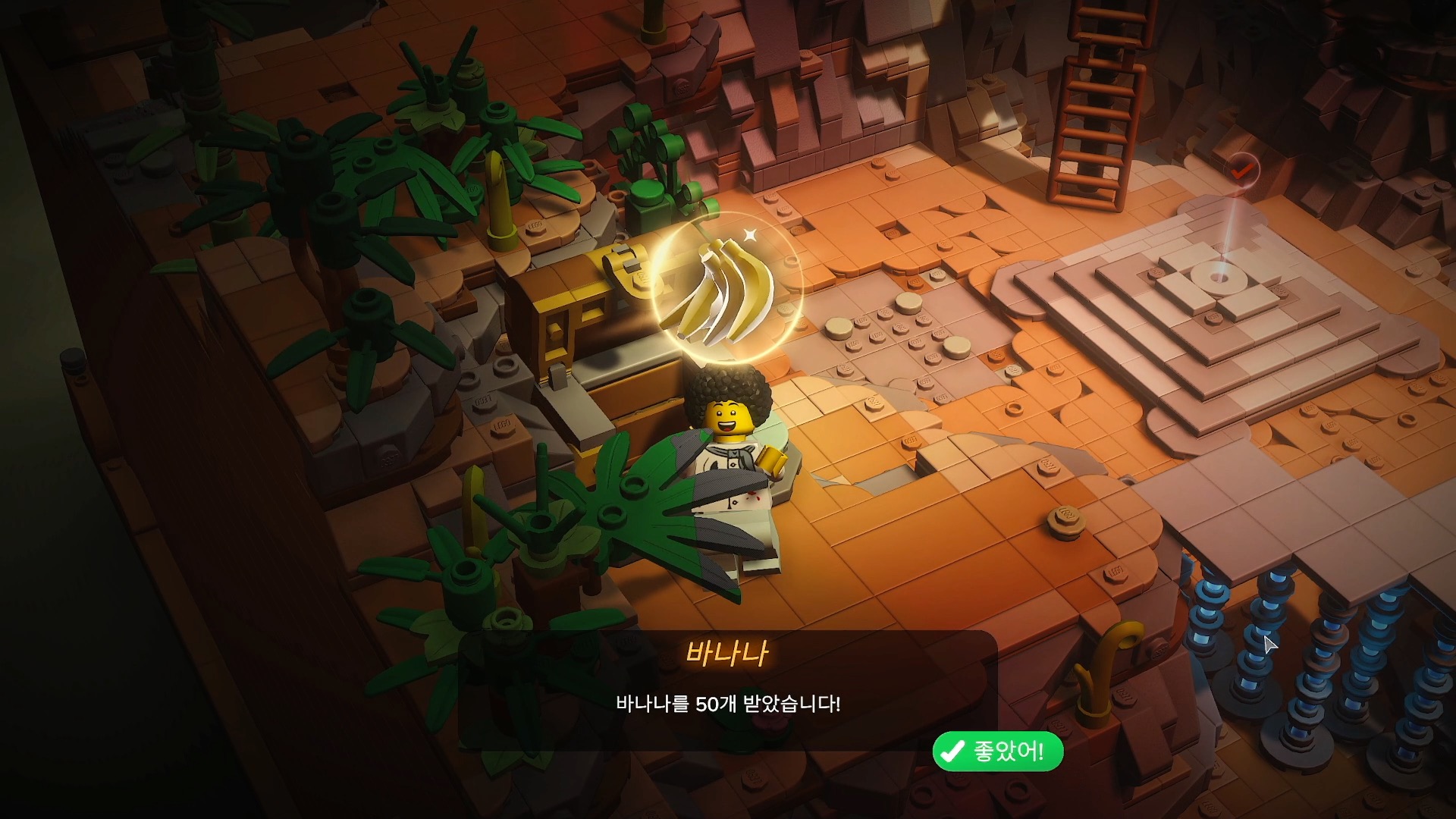 게임을 진행하다 보면 곳곳에 보물상자가 존재하는데 바나나를 보상 받을 수 있다. 바나나는 레고 브릭테일즈 내의 게임 재화이며 이 바나나로 샌드박스에 이용할 레고 블럭 세트와 특별한 커스터 마이징을 구매 할 수 있다.